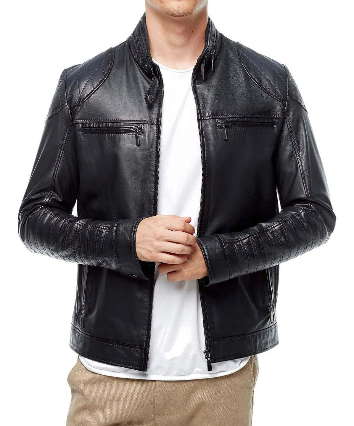 "Experience unparalleled style with our Men Leather Jacket. Crafted from premium genuine leather, this jacket offers both durability and a luxurious feel. The slim fit design highlights your silhouette, making it a perfect addition to any wardrobe. Whether you're riding your motorcycle, going out for a casual evening, or attending a formal event, this versatile jacket suits every occasion."