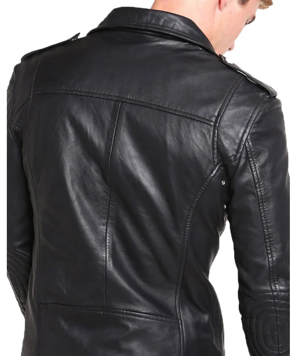 "Experience unparalleled style with our Men Leather Jacket. Crafted from premium genuine leather, this jacket offers both durability and a luxurious feel. The slim fit design highlights your silhouette, making it a perfect addition to any wardrobe. Whether you're riding your motorcycle, going out for a casual evening, or attending a formal event, this versatile jacket suits every occasion."