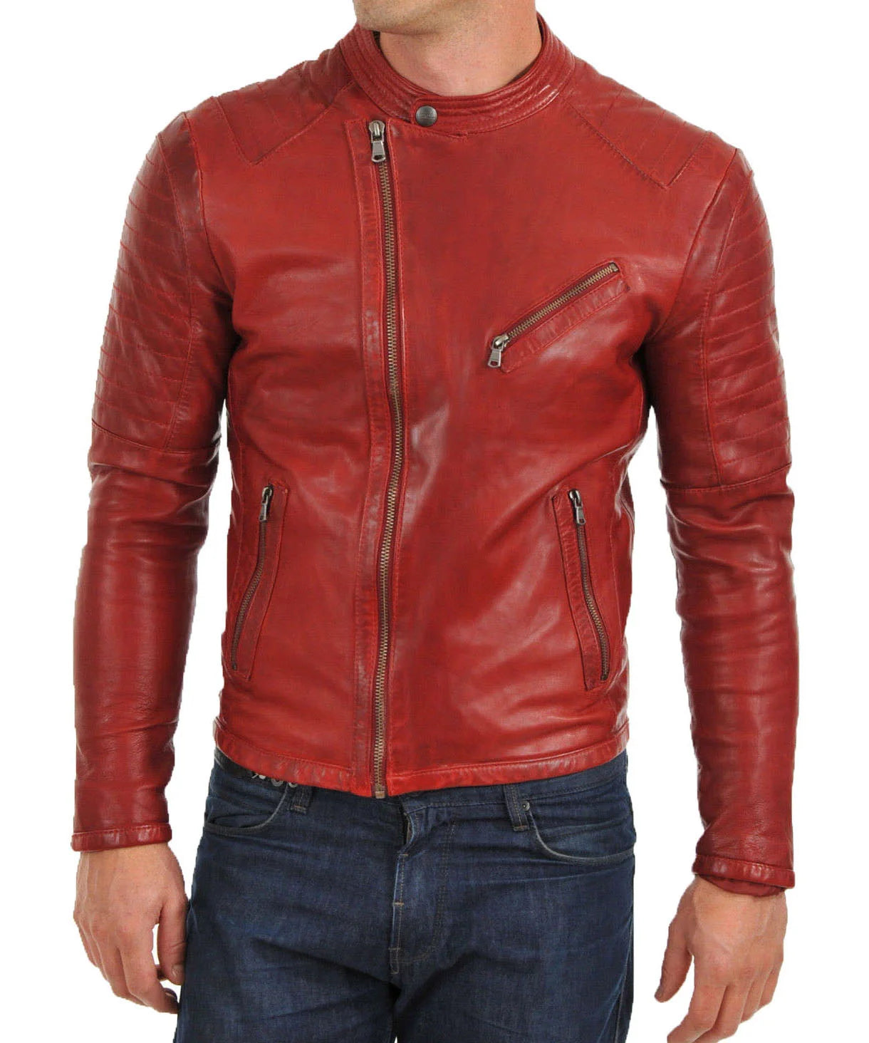 "Experience unparalleled style with our Men Leather Jacket. Crafted from premium genuine leather, this jacket offers both durability and a luxurious feel. The slim fit design highlights your silhouette, making it a perfect addition to any wardrobe. Whether you're riding your motorcycle, going out for a casual evening, or attending a formal event, this versatile jacket suits every occasion."