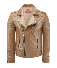Men Biker Leather Jacket Camel Beige SkinOutfit
