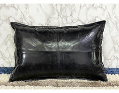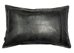 Genuine Crunch Leather Rectangle Pillow Cover Black