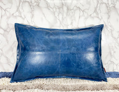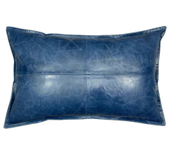 Genuine Crunch Leather Rectangle Pillow Cover Blue
