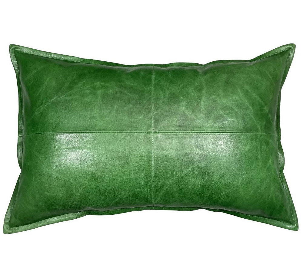 Genuine Crunch Leather Rectangle Pillow Cover Green