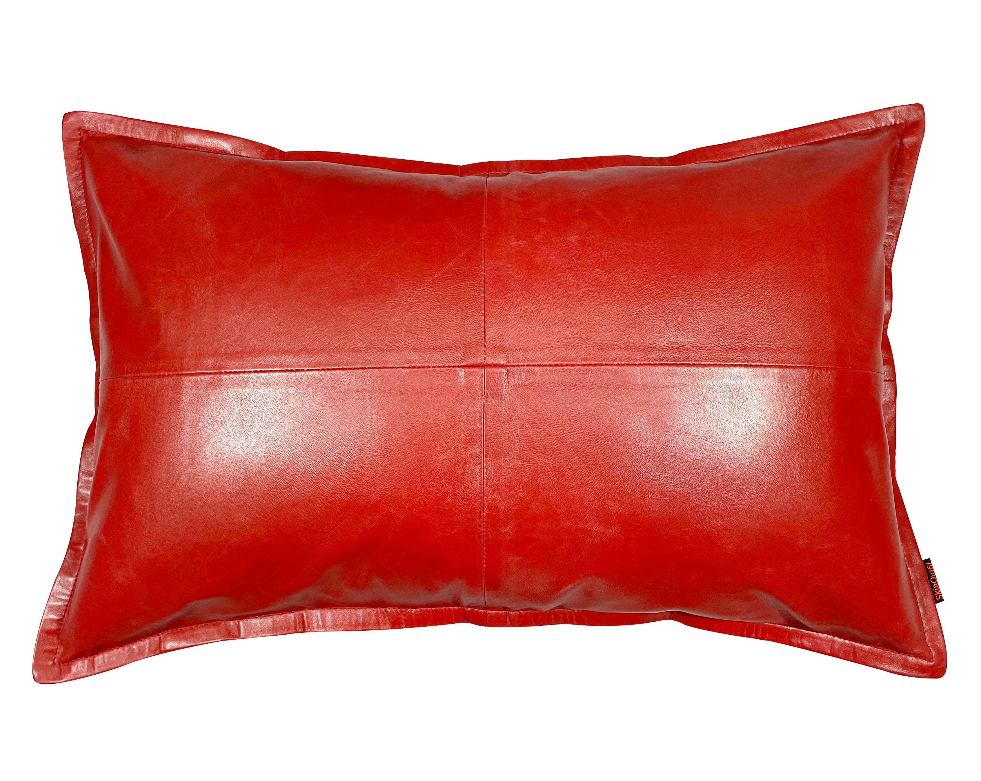 Lambskin Leather Rectangle Pillow Cover Red