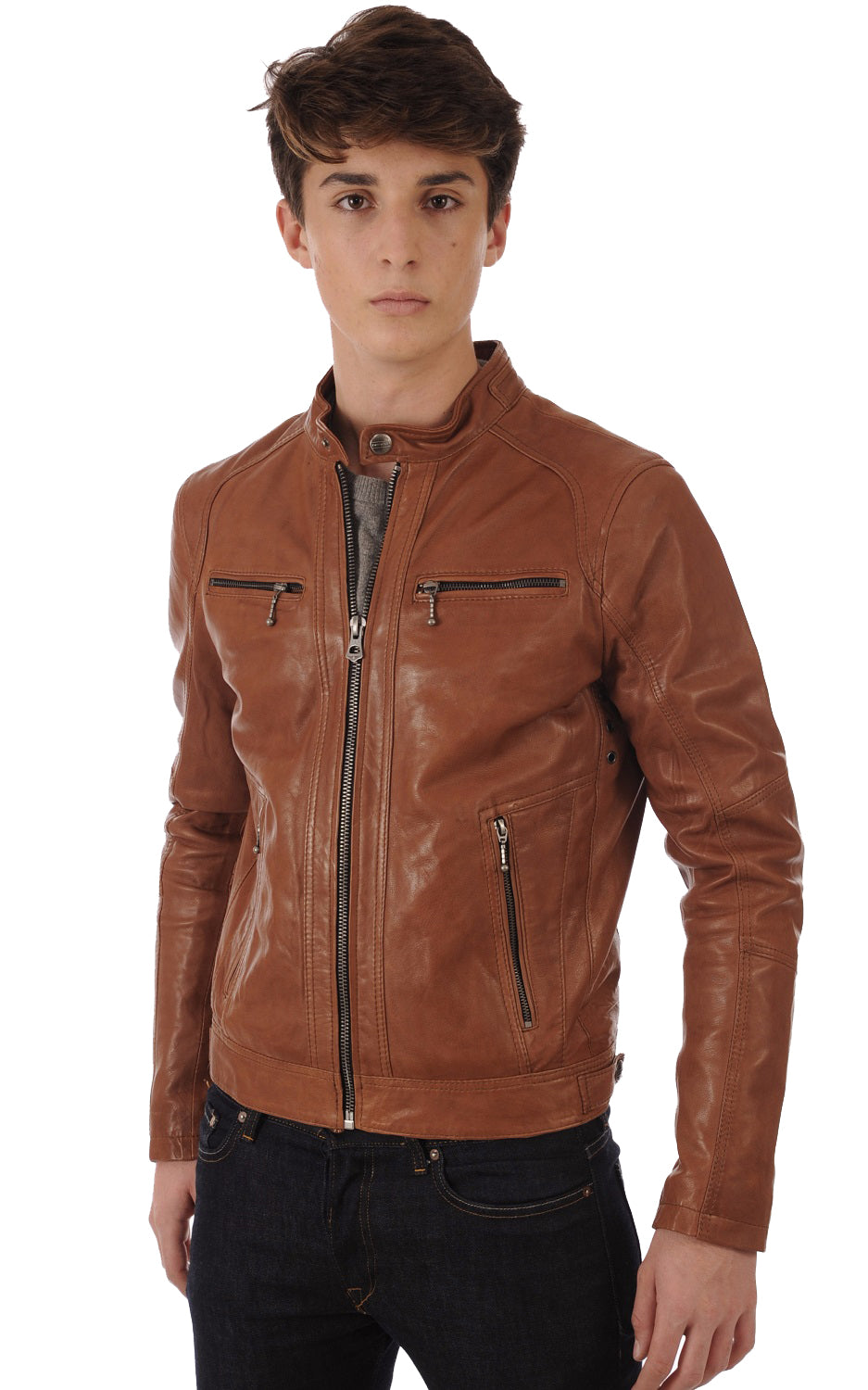 "Experience unparalleled style with our Men Leather Jacket. Crafted from premium genuine leather, this jacket offers both durability and a luxurious feel. The slim fit design highlights your silhouette, making it a perfect addition to any wardrobe. Whether you're riding your motorcycle, going out for a casual evening, or attending a formal event, this versatile jacket suits every occasion."