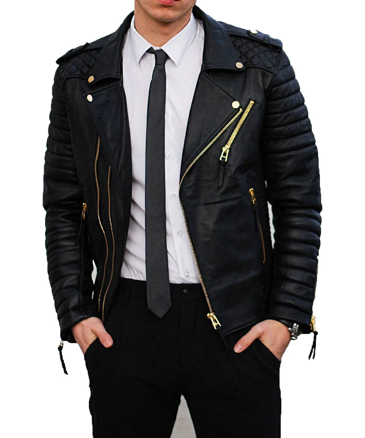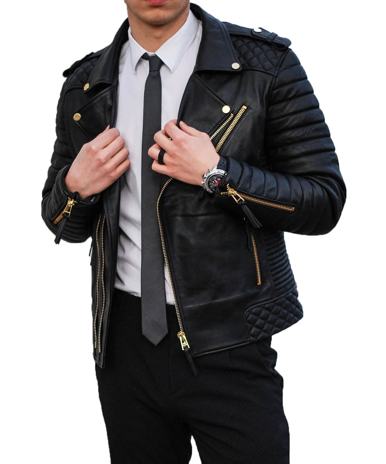 "Experience unparalleled style with our Men Leather Jacket. Crafted from premium genuine leather, this jacket offers both durability and a luxurious feel. The slim fit design highlights your silhouette, making it a perfect addition to any wardrobe. Whether you're riding your motorcycle, going out for a casual evening, or attending a formal event, this versatile jacket suits every occasion."