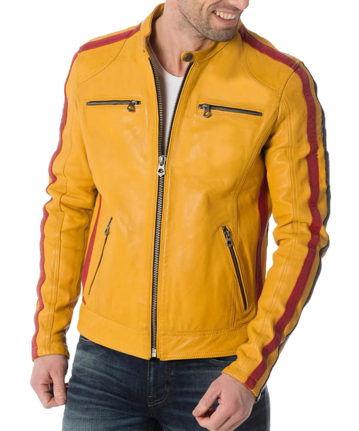 "Experience unparalleled style with our Men Leather Jacket. Crafted from premium genuine leather, this jacket offers both durability and a luxurious feel. The slim fit design highlights your silhouette, making it a perfect addition to any wardrobe. Whether you're riding your motorcycle, going out for a casual evening, or attending a formal event, this versatile jacket suits every occasion."