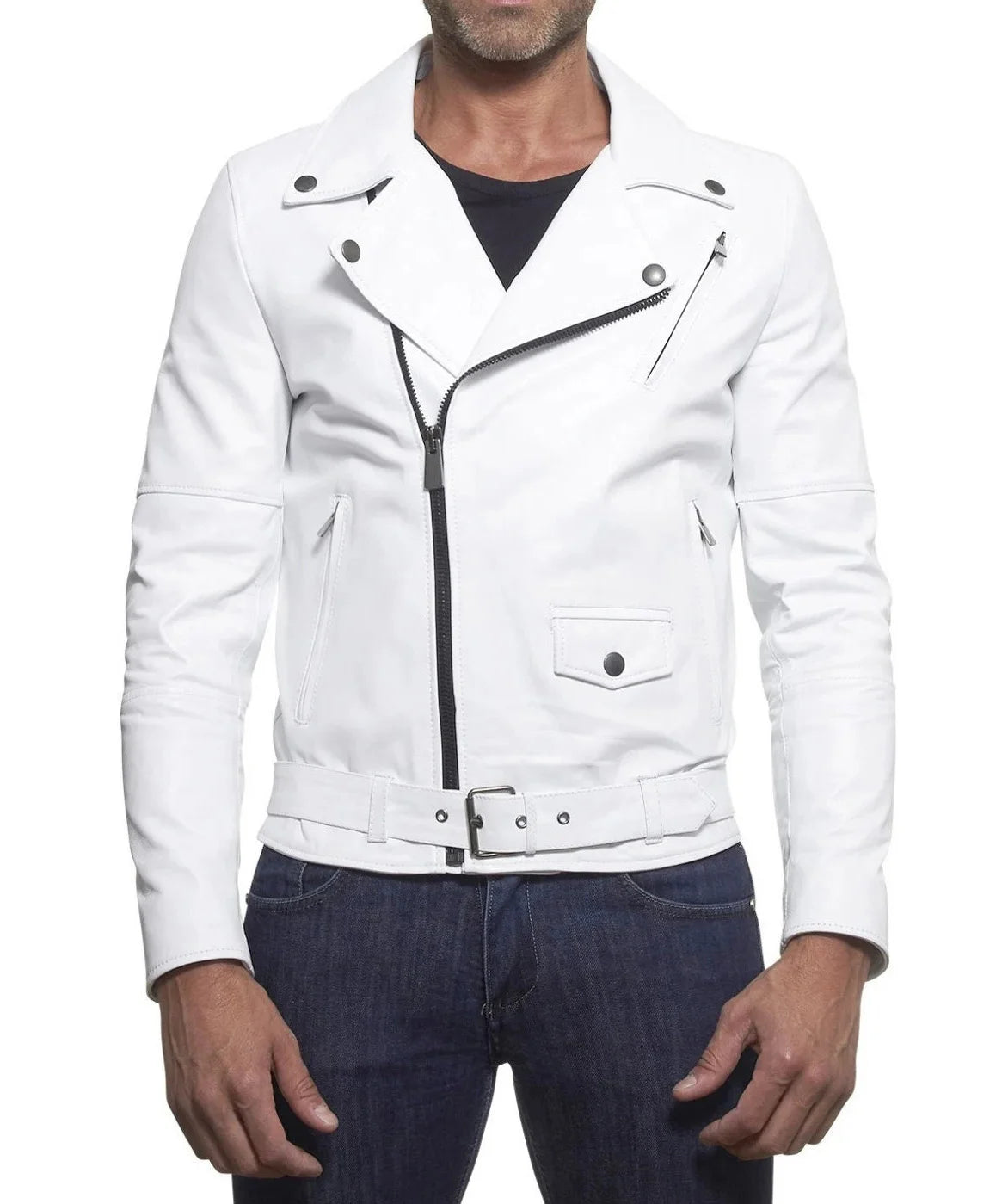 "Experience unparalleled style with our Men Leather Jacket. Crafted from premium genuine leather, this jacket offers both durability and a luxurious feel. The slim fit design highlights your silhouette, making it a perfect addition to any wardrobe. Whether you're riding your motorcycle, going out for a casual evening, or attending a formal event, this versatile jacket suits every occasion."