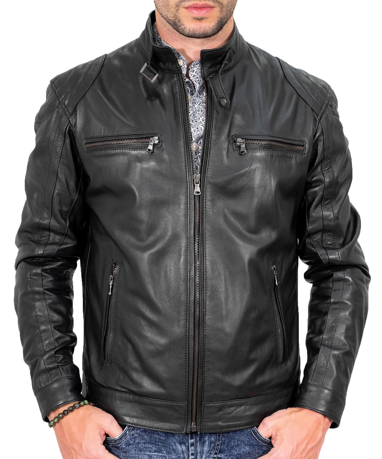 "Experience unparalleled style with our Men Leather Jacket. Crafted from premium genuine leather, this jacket offers both durability and a luxurious feel. The slim fit design highlights your silhouette, making it a perfect addition to any wardrobe. Whether you're riding your motorcycle, going out for a casual evening, or attending a formal event, this versatile jacket suits every occasion."