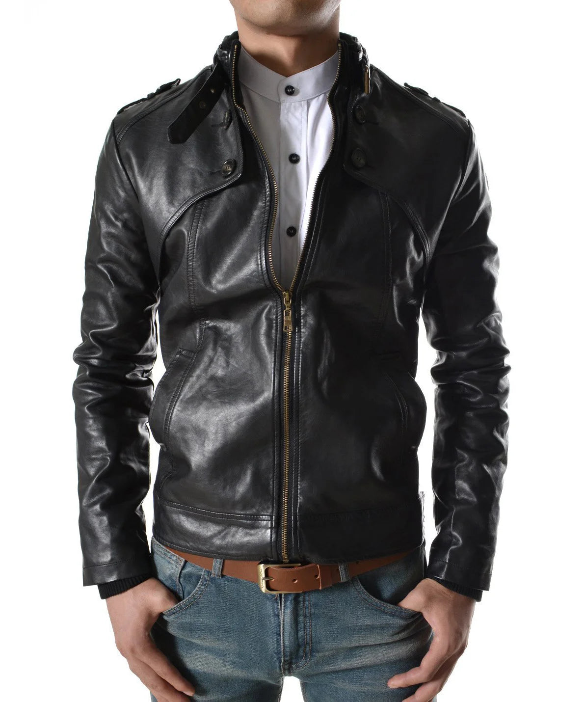 "Experience unparalleled style with our Men Leather Jacket. Crafted from premium genuine leather, this jacket offers both durability and a luxurious feel. The slim fit design highlights your silhouette, making it a perfect addition to any wardrobe. Whether you're riding your motorcycle, going out for a casual evening, or attending a formal event, this versatile jacket suits every occasion."