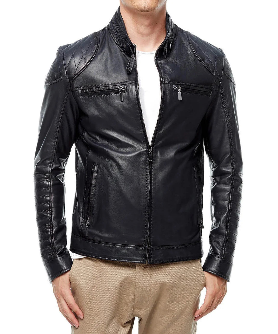 "Experience unparalleled style with our Men Leather Jacket. Crafted from premium genuine leather, this jacket offers both durability and a luxurious feel. The slim fit design highlights your silhouette, making it a perfect addition to any wardrobe. Whether you're riding your motorcycle, going out for a casual evening, or attending a formal event, this versatile jacket suits every occasion."