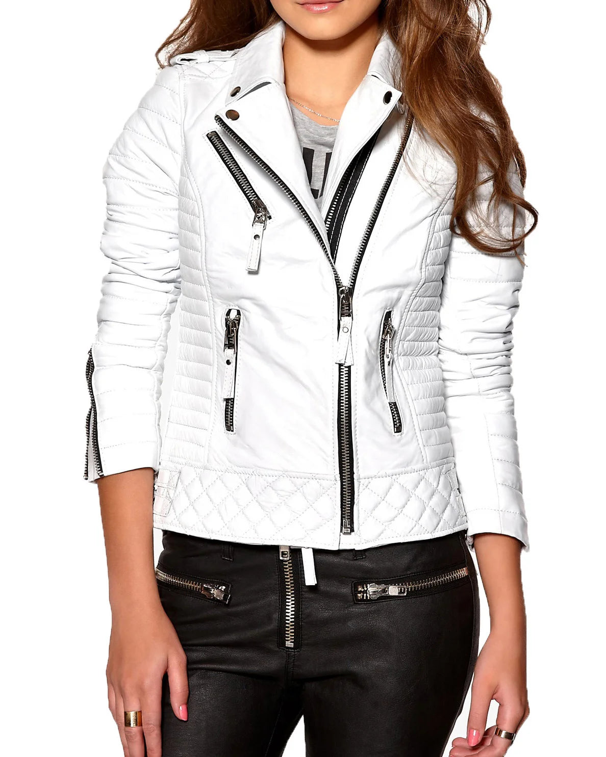 "Experience the perfect blend of fashion and function with our Women's Leather Jacket. Crafted from premium genuine leather, this jacket is designed for the modern woman who values both style and durability. Whether you're heading out for a night on the town or simply want to add a touch of sophistication to your everyday look, this jacket is your go-to choice."