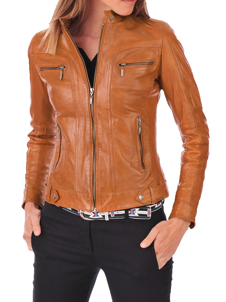Women Lambskin Genuine Leather Jacket WJ 71 freeshipping - SkinOutfit