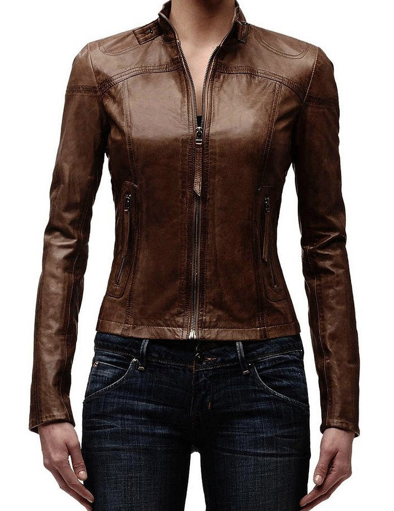 Women Lambskin Genuine Leather Jacket WJ118 SkinOutfit