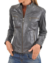 Women Lambskin Genuine Leather Jacket WJ143 SkinOutfit