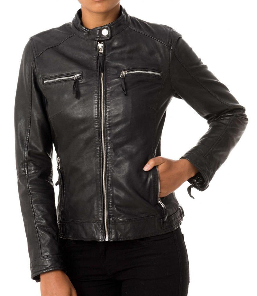 Women Lambskin Genuine Leather Jacket WJ146 SkinOutfit