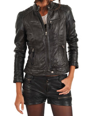 Women Lambskin Genuine Leather Jacket WJ197 SkinOutfit