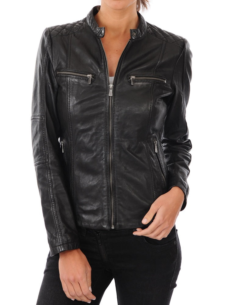 Women Lambskin Genuine Leather Jacket WJ204 SkinOutfit
