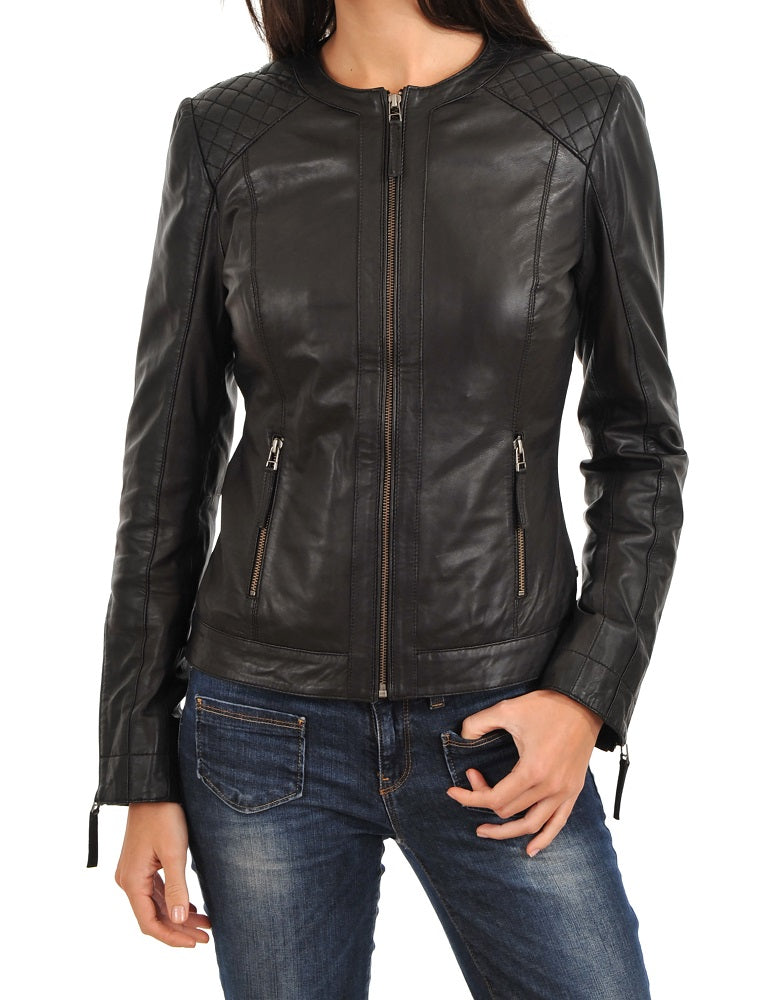 Women Lambskin Genuine Leather Jacket WJ217 SkinOutfit